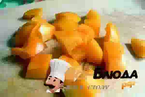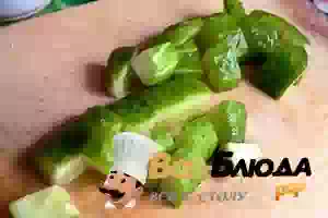 2. Половинку салатного перца порубить так же крупно, как огурец.