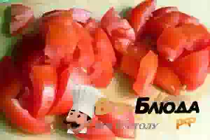 1. Хорошо вымытые овощи порезать для салата. Огурец порежьте крупным кубиком.