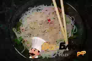 4. В салатницу выложить помидоры, зелень, посыпать орехами, выложить фунчозу, лук и чеснок, перемешать, полить соевым соусом по вкусу.