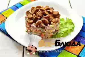 8. Верх салата посыпаем ржаными сухариками. "Пивной" салат с сухариками готов.
