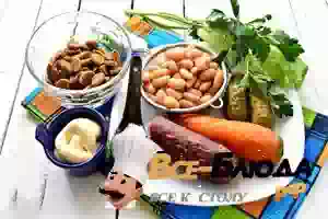 1. Подготавливаем нужные продукты для "пивного" салата. Заранее отвариваем морковь.
