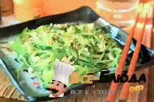 5. Разложить салат на тарелки, посыпать измельченным арахисом и кунжутом, подавать сразу.