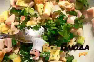 7. Листья петрушки мелко порубите, и добавьте к салату.