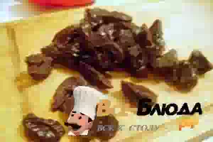 1. Очень интересное сочетание 'сытного и сладкого', как сказал один из ПЧ. Черносливы разрезаем кусочками на 3-4 части в длину.