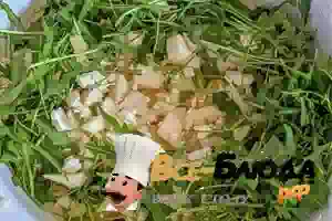 3. Поливаем все ингредиенты заправкой, перемешиваем салат и раскладываем на порции.