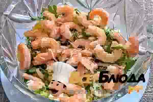 4. Необычный салат из креветок с апельсином, брынзой и грушами готов. Вкусно!