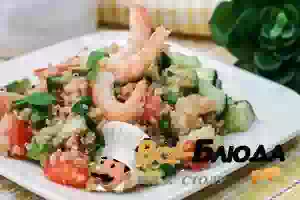 Салат из киноа с креветками и овощами