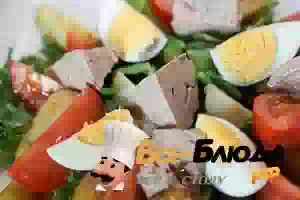 Салат Нисуаз с печенью трески