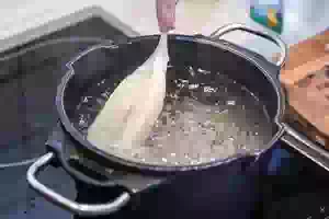 2. Вскипятить подсоленную воду и варить кальмаров до готовности. Время готовки зависит от кальмаров. Некоторым достаточно 3 минут. У меня были «толстые» кальмары, и чтобы они на вкус не казались сырыми, я варила их почти 20 минут. Готовых кальмаров переложить в холодную воду и дать им остыть. Затем откинуть на дуршлаг, чтобы вода полностью стекла.