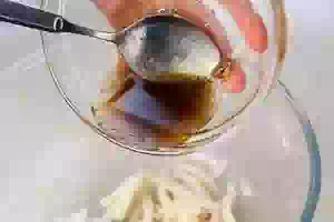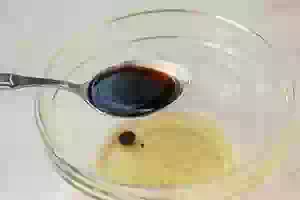 2. Для соуса смешать растительное масло с пропущенным через пресс чесноком и добавить бальзамический уксус. Приправить молотым черным перцем, солью и размешать. Заправка для салата из кальмаров с корейской морковкой готова.