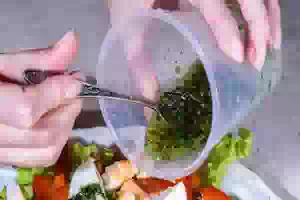 6. Полить салат зеленым соусом и дать настояться 10-15 минут. Салат готов.