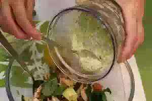 5. Приготовить соус «Зеленая богиня». Для этого достаточно пробить в блендере перечисленные в рецепте продукты. Добавить соус в салат перед самой подачей, аккуратно перемешать и можно подавать на стол.