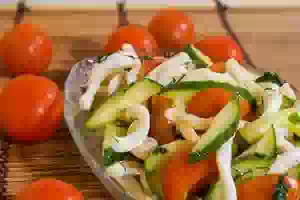 Острый овощной салат с кальмарами