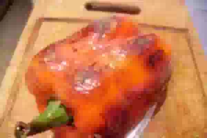 4. Теперь самое главное – это заправка салата. Для этого перец протыкаем вилкой в нескольких местах и обжариваем на сковороде с растительным маслом со всех сторон. Вот такой должен получиться перец.