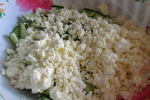 Как приготовить "Салат с крабовыми палочками, творогом и свежими огурцами"