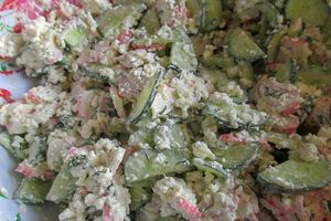 Салат с крабовыми палочками, творогом и свежими огурцами
