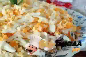 7. Сверху натереть яйцо куриное. И покрыть им весь салат. Поставить салат в холодильник на 30 минут.