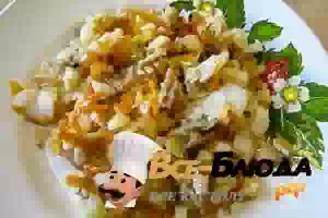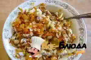 8. Выложить рыбу в глубокое блюдо, добавить поджаренные овощи. Хорошенько перемешать. Оставить минут на 10-15, чтобы готовый салат как следует пропитался. Салат из жареного минтая с овощами можно подавать как самостоятельное блюдо или как дополнение к основному.