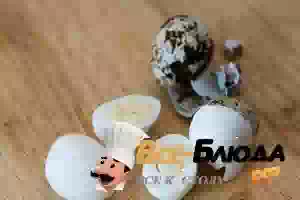 3. Сварить перепелиные яйца, переложить их в холодную воду, чтобы они остыли, и очистить. Каждое перепелиное яйцо разрезать пополам.