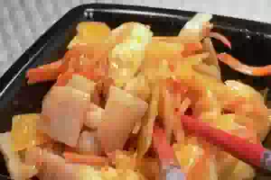 Салат «Крабовый» с ананасами Ингредиенты: кукуруза консервированная - 1 банка майонез (или сметана) - 90г крабовые палочки - 200г капуста пекинская - 350г
