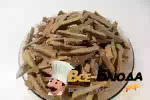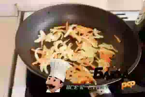 2. Лук и морковь почистите, а затем нарежьте брусочками. Обжарьте овощи в масле до лёгкого румянца.
