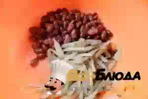 1. В миске соедините огурец, нарезанный соломкой, и фасоль (без жидкости) из банки.