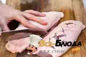1. Утиную грудку вымыть, обсушить бумажными салфетками и на коже сделать крестообразные неглубокие надрезы.