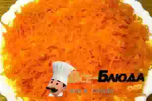 7. Посыпаем зернами граната. Прикрываем собранный слоеный салат пищевой пленкой и ставим в холодильник для пропитки слоев не менее, чем на 1 час. Через час, когда салат настоится, украшаем его. Из отваренной моркови и яйца делаем розочки. Острым ножом по спирали с моркови и яйца не очень тонко срезаем верхний слой высотой 1-1,5 см. и длиной 3-4 см. Затем ленточку сворачиваем в рулончик в виде цветка. Закрепляем в центре салата, добавляем зелень укропа. Готовый слоеный салат из мяса с зернами граната подаем на стол.