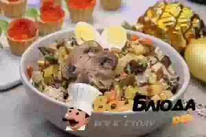 Машеровский салат с жареными грибами и курицей