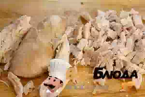 5. Курицу разделить на кусочки и каждый порезать небольшими кубиками.