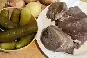 Как приготовить "Берлинский салат из отварной говядины с солёными огурцами"