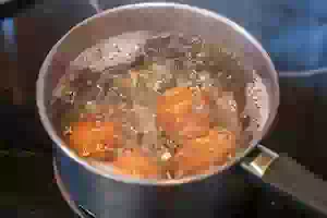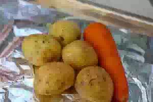 1. Заранее подготовить овощи для салата. Картофель и морковь вымыть и сварить до мягкости в подсоленной воде. Еще лучше - овощи запечь. Тогда в них останется больше вкуса, чем в вареных овощах. Отставить в сторону, чтобы остыли.