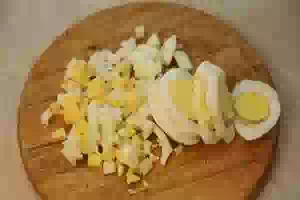 7. Примерно такими же кубиками нарезать жареную курицу.