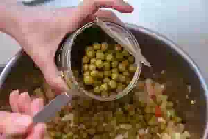 10. Добавить консервированный зеленый горошек (без жидкости).