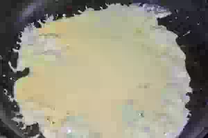 2. Готовый омлет переложить на тарелку, дать ему остыть, а затем нарезать небольшими кусочками.