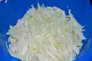 3. Готовый омлет переложить на тарелку, дать ему остыть, а затем нарезать небольшими кусочками. Салат из пекинской капусты с крабовыми палочками, кукурузой и омлетом , Шаг 03 Пекинскую капусту сполоснуть под проточной холодной водой, обсушить на бумажных полотенцах и нарезать соломкой. Нарезанную капусту посолить и слегка помять руками.