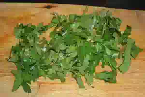 6. Зелень промыть под холодной проточной водой, обсушить на бумажном полотенце и мелко порубить.