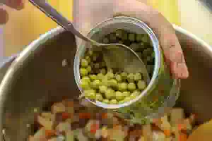 1. Заранее сварить свиные языки. Предварительно их над промыть под холодной проточной водой, сложить в глубокую кастрюлю, залить холодной водой и поставить на огонь. Довести воду до кипения, снимая шумовкой пену, уменьшить огонь, приправить солью, добавить лавровый лист, перец горошком и продолжить варить не менее примерно 1-1.5 часа. Время варки языка зависит от его размера, но, конечно, он варится быстрее, чем говяжий язык. Пока варятся языки, в другой кастрюле сварить овощи для салата оливье: неочищенные, хорошо вымытые картофель и морковь положить в кастрюлю с кипящей подсоленной водой и варить на среднем огне до готовности. В отдельной кастрюле сварить яйца вкрутую (они будут готовы через 10 минут, после того как вода закипит).
