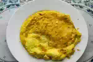 2. Хорошо вымесить получившуюся массу. Приготовить из неё несколько омлетиков на предварительно разогретой и смазанной небольшим количеством растительного масла сковороде.