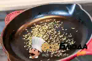 2. На сухой сковороде без масла прогреть семена тмина, чтобы раскрылся аромат пряности.