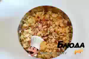 5. Тщательно утрамбовываем и смазываем майонезом.