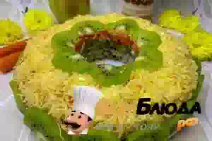 Слоеный салат «Изумрудный браслет» из кролика с киви