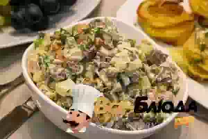 Салат Оливье с говяжьим сердцем