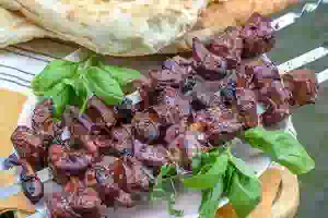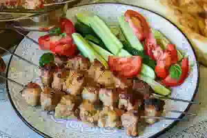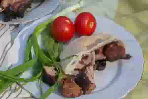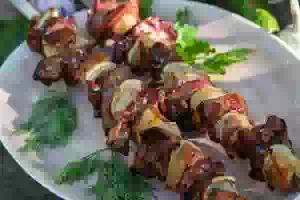 Шашлык из сердца на мангале в маринаде с перцем чили