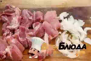1. Мякоть свинины вымыть, обсушить бумажным полотенцем и порезать крупными кусочками. Лук порезать полукольцами толщиной около 5 мм. Сложить лук в миску для маринования и немного подавить руками, чтобы он выделил сок. Добавить к луку кусочки мяса для шашлыка.