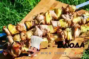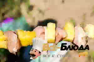 6. Нанизать на шампур кусочки курицы, чередуя с ананасом.