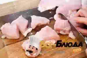 2. Получившееся куриное филе порезать крупными кусками (примерно 3х3 см).