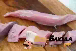 1. Мясо индейки вымыть под проточной холодной водой и обсушить на бумажном полотенце. Затем каждое филе разрезать на кусочки размером примерно 3х3 см.