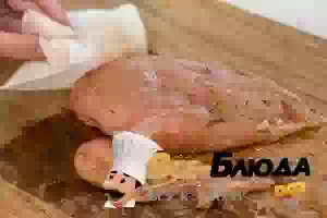 1. Филе куриной грудки (без кожи) натереть смесью соли с молотым черным перцем, пропущенным через пресс чесноком и растительным маслом. Мясо положить в миску и убрать в холодильник на несколько часов, а лучше на ночь.
