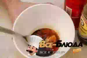 6. Приготовить соус. Для этого смешать соевый соус, соус чили, мед. Следом добавить полстакана воды из чайника и размешать до однородности.